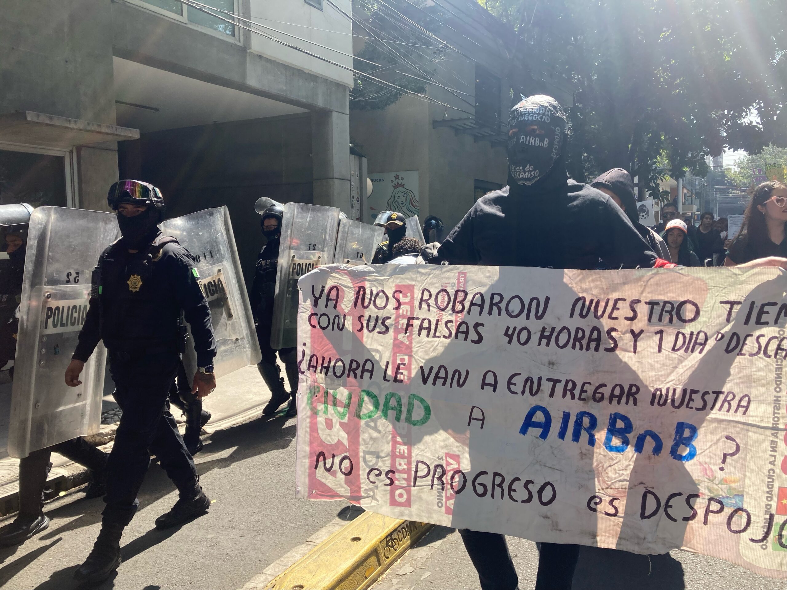 El reclamo por el acceso a una vivienda digna recorre las manifestaciones antimundialistas en Ciudad de México desde hace meses, mientras la respuesta gubernamental ha sido un amplio despliegue policial, sin precedentes, que ha encapsulado el reclamo entre filas de agentes.