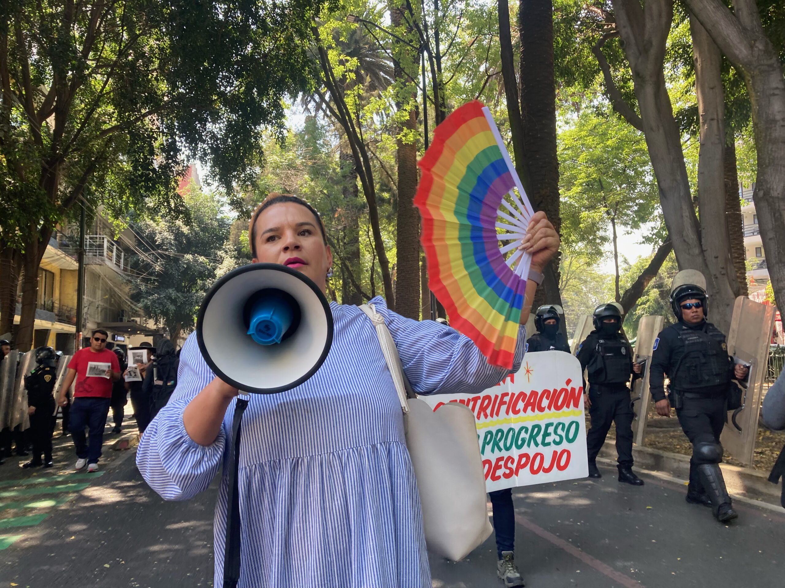 “Pues obviamente es una amenaza. A la directora de nuestro colectivo le reventaron la cabeza en Tlalpan, la desmayaron y después la volvieron a levantar de una patada los policías. Ella no está hoy aquí y en parte es porque está aterrorizada. Aunque es una mujer fuerte y resiliente, que lleguen 80 policías cuando tú eres minoría es una estrategia clara del Estado para desincentivar que nosotras nos manifestemos”, explicó Ana.