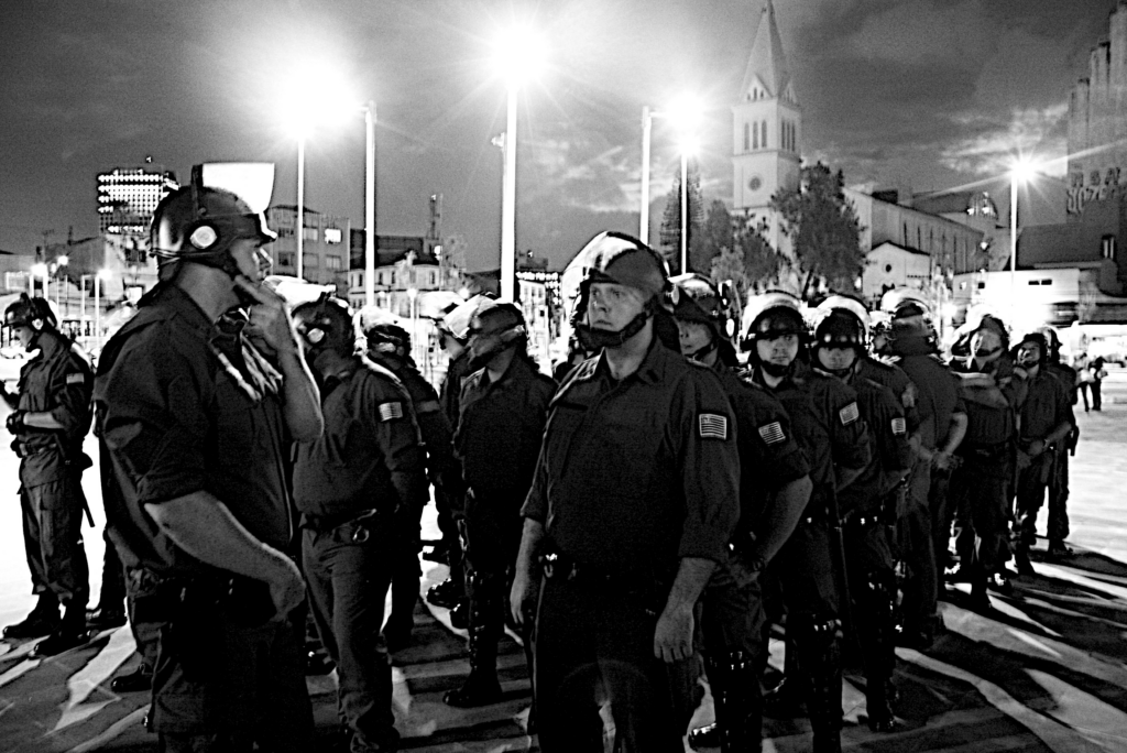 São Paulo, 13 de marzo de 2014. La Policía Militar rodea a una multitud en la plaza Largo da Batata, en São Paulo. Créditos: Raphael Sanz
